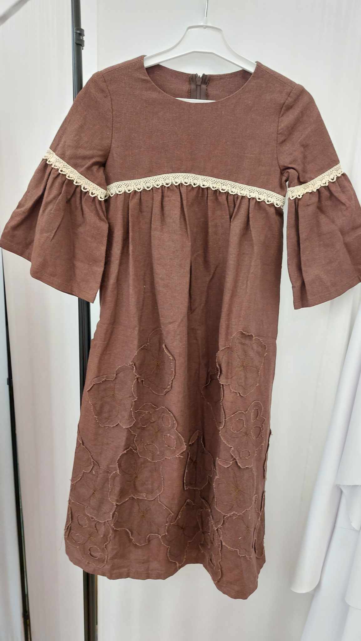 Sukienka dziewczęca z lnu, czekolada, rozmiar 128