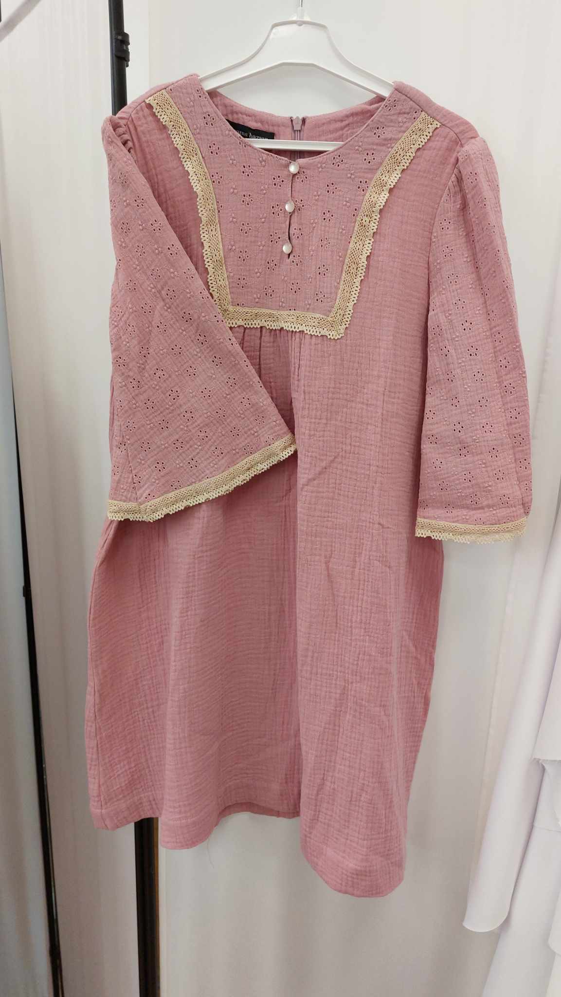 Sukienka dziewczęca z muślinu, brudny róż, rozmiar 122/128.